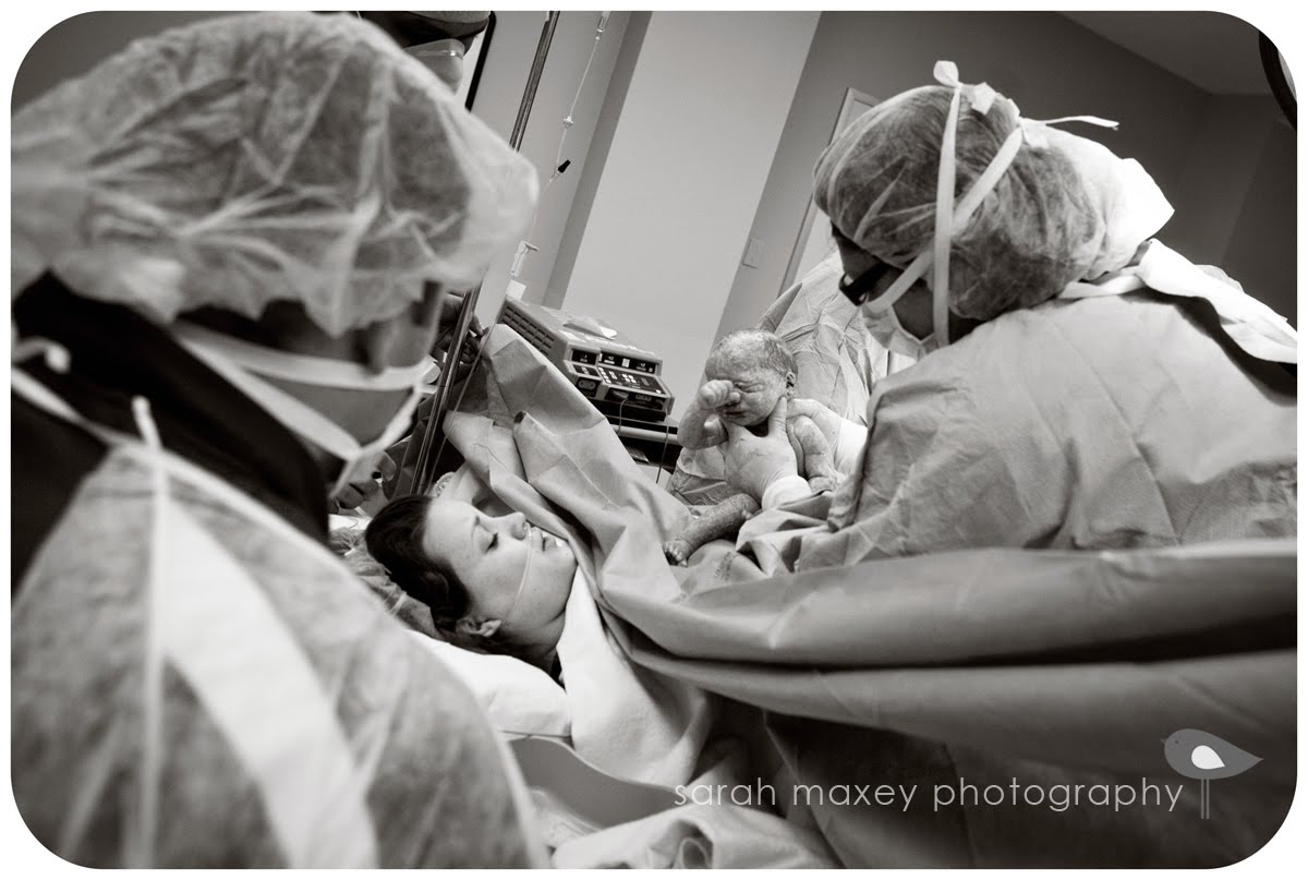 This was all happening too fast. Just two hours ago I was sitting in the waiting room for a routine check up with absolutely no intentions of having a baby. I don’t know that I could really even comprehend what was going on, I just kept laughing and saying “What the hell??” My room was full, nurses were handing me things to sign, putting wrist bands on, giving me an ugly paper hat, the anesthesiologist was explaining the spinal tap and I drank some very nasty liquid to keep me from aspirating during surgery. I didn’t have my camera, my bag, the car seat, NOTHING.